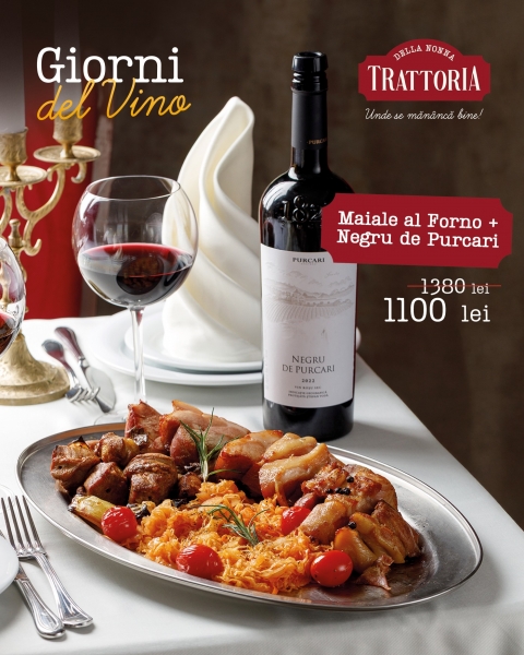 Pe tot parcursul lunii octombrie, acesta va fi însoțit de Maiale al Forno la un preț atractiv.Un platou de carne cu frigărui suculente din ceafă de porc, ciolan de porc rumenit, varză în stil bavarez și roșii cherry confiate.